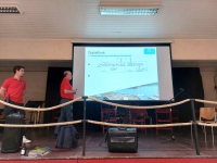 müssen … auf der Hallenbühne waren zwei Luxemburger Funkamateure sichtlich bemüht, mit Hilfe von Multimedia-Unterstützung die Grundlagen und Möglichkeiten des