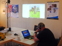 Die Veranstaltung war als Info-Ausstellung organisiert. Auf einer Seite des Raumes lief eine Diaschau, die die Aufbauphase von der Masterrichtung bis zum Anschluss ans Internet zeigte. Ein funktionstüchtiges Modell der Remote-Station mit allen Komponenten, von der Stromversorgung über den Transceiver bis zum Antennenrotor, stand auf einem Tisch. Hier konnte man sich über die Steuerungsabläufe informieren. Ein einzelner Laptop mit Internetanschluss erlaubte den Betrieb der realen Remote-Station, die sich gut 300 Meter vom Veranstaltungsort entfernt auf den Grundstück eines der OV-Mitglieder befindet. Mit den vor Ort aufgebauten Kurzwellen- und Ultrakurzwellen-Stationen konnte Funkverkehr mit der Remote-Station abgewickelt werden. Hier ging es darum herauszufinden, wie sich die unvermeidlichen Verzögerungszeiten auswirken und ob damit auch Contest-Betrieb möglich ist. Daneben gab es reichlich Informationsmaterial für Besucher, die keine Funkamateure sind, die sich aber für dieses technische Hobby interessieren.