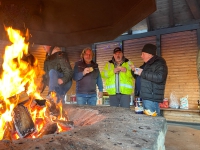 Der mittlerweile schon als traditionell anzusehende „Glühweintreff“ des Ortsverbandes Vulkaneifel (K34) ging am Samstag, dem 02. Dezember 2023, in seine dritte Auflage und fand unter den Mitgliedern - als auch unter den Besuchern - sehr viel Zuspruch. Bei moderaten Minustemperaturen (-3 Grad Celsius) trafen sich gegen 12:45 Uhr die beiden Organisatoren Siegfried Schüller (DF9WB) und Volker Schnitzius (DL1WH) an der Grillhütte in Kirchweiler, um mit den Vorbereitungen und dem Aufbau zu beginnen. Nachdem die Fahrzeuge fußläufig neben der Hütte geparkt waren, wurden Kochplatte, Töpfe, Lebensmittel, Zubehör und das restliche Holz im halboffenen Innenraum des rechten Teils der Hüte verstaut. Diese hat eine offene Feuerstelle, sodass für eine halbwegs warme Umgebung während des Treffens gesorgt werden kann. Als nächstes wurde der Glühwein in einem großen Topf angesetzt und langsam erhitzt. Auch die Würstchen fanden schon mal den Weg in einen Topf, sodass auch diese sich langsam erwärmen konnten. Anschließend wurde das Feuer angefacht. Siegfried hatte am Vortag schon mal eine Kofferraumladung Holz herbeigeschafft, mit dem am heutigen Tag Mitgebrachten sollte der Vorrat für 3-4 Stunden reichen. Das Feuerchen brannte recht schnell sehr gut und wärmte die Umgebung merklich auf.