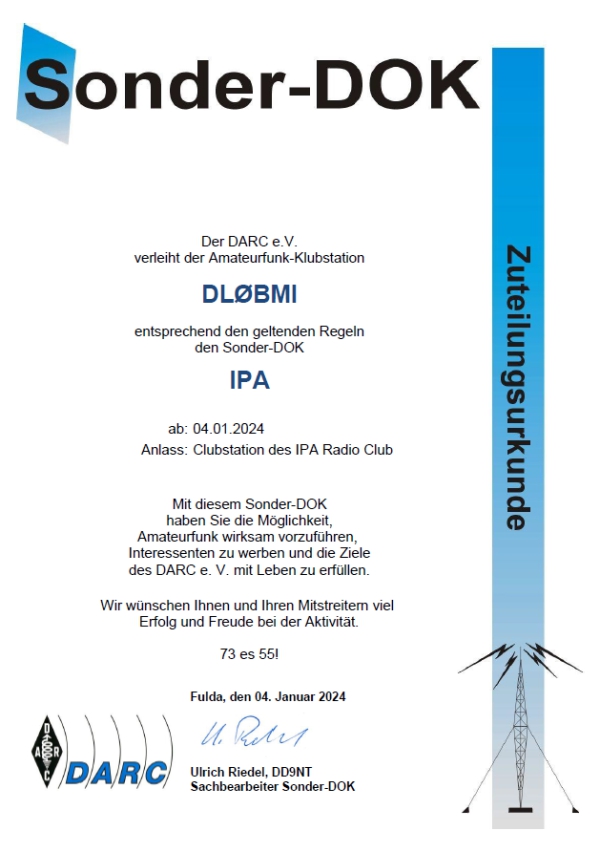 Somit war es nicht nur geboten, sondern auch folgerichtig, die interessante Geschichte des Rufzeichens DLØBMI zu erhalten, indem es in Tradition der engen Zusammenarbeit mit der IPA durch den IPA-Radioclub mit Wirkung des 23.11.2023 wieder aktiviert werden konnte.