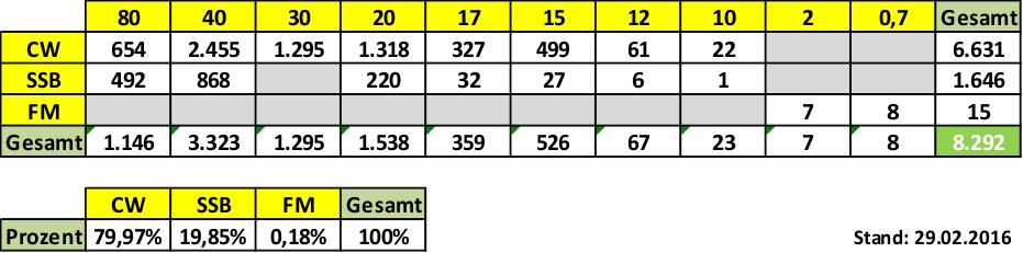 Man konnte gut erkennen, dass ein Großteil der Funkamateure schon strukturiert arbeitet - sie rufen einen nach sogenannten Bandslots an (also jeweils in einer Betriebsart auf ein- und demselben Band nur einmal). Es gibt aber auch „Spezialisten“, denen waren z.B. 9 (neun!) Kontakte auf dem 20m-Band in CW sehr wichtig … Schlussendlich stehen 8.292 Funkverbindungen mit 120-DXCC-Entities aus allen Kontinenten im Logbuch. Neben dem Spaß am praktischen Funkbetrieb konnten damit im Laufe des Jahres ganz nebenbei viele wichtige Punkte für die Vulkaneifel-Trophy vergeben werden. Ein Schuhkarton voller QSL-Karten hat den Verantwortlichen mittlerweile schon über den direkten Weg bzw. über das QSL-Büro des DARC erreicht. Die QSL-Karten von DL1965WH werden in den kommenden Wochen über den jeweils gleichen Weg das Haus verlassen. Vielen Dank an alle Funkamateure weltweit, die mit ihrem Anruf zum Gelingen von DL1965WH aktiv beigetragen haben!