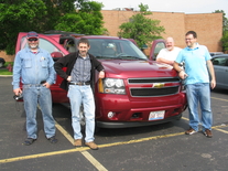Es folgte nun die lange und ermüdende Einreiseprozedur, die alle Passagiere über sich ergehen lassen mussten. In einer relativ düsteren Halle mit stickiger Luft standen nun alle in einer großen Schlange an, um die Schalter der Department of Homeland Security (U.S. Customs and Boarder Protection) passieren zu können. Da wir im Flugzeug ganz hinten saßen, kamen wir auch erst relativ spät an die Reihe … jeder Passagier benötigte im Durchschnitt ca. 3-5 Minuten, wir waren dann so ungefähr nach weit über einer Stunde dran. Ein von der Mimik her ernst drein schauender Beamter in Respekt einflößender Uniform winkte mich mit einer kurzen, aber bestimmten Handbewegung aus der Wartezone zu sich an den Schalter, um wortlos den Reisepass entgegen zu nehmen. Nach Sichtung und Kontrolle des Dokuments wurden die Fingerabdrücke beider Hände genommen, ein Foto zu Iriserkennung des Auges wurde ebenfalls obligatorisch gemacht. Anschließend stellte er mir noch ein paar unverfängliche Fragen bezüglich meines Grundes zur Einreise in die USA, die ich dann wahrheitsgemäß mit dem Besuch der Hamvention in Dayton beantwortete. Sofort erkannte er, dass wir wohl eine ganze Gruppe seien, wünschte mir viel Spaß und verabschiedete sich mit den Worten: "Enjoy your stay!" Diese Hürde war geschafft und wir waren alle froh, den Raum endlich verlassen und unsere Koffer am Gepäckband entgegen nehmen zu können. Meinen suchte ich relativ lange, denn aufgrund der langen Einreiseprozedur war das Band längst abgefertigt, und nur noch einige wenige Gepäckstücke standen verloren in der großen Halle rum. Nach einigem Suchen fand ich ihn dann doch noch - nicht soviel Glück hatte Edgar, denn sein Koffer sollte an diesem Tag nicht mehr auftauchen! Weg! So stand er nun da - nur mit dem ausgestattet, was sein Handgepäck hergab, und das war nicht sonderlich viel … Thomas und Edgar verschwanden dann für eine etwas längere Zeit in den Weiten des Flughafens, um sich um den verloren gegangen Koffer bzw. um die damit verbundenen Formalitäten zu kümmern. Nachdem das dann auch erledigt war, fuhren wir mit dem Shuttle-Bus zu unserem Autovermieter AVIS, um die bestellten Fahrzeuge entgegenzunehmen. Beim Eintreffen auf dem eines Auslieferungslagers eines Automobilherstellers ähnlichem Gelände erkannten wir recht schnell, dass es hier wohl nur größere Fahrzeuge geben wird. Kein Vergleich zu Europa, wo Mietwagen in der Regel doch eher etwas kleiner ausfallen. Nachdem wir unsere beiden Autos (ein roter Chrysler Tahoe und ein schwarzer Dodge Grand Caravan SE) in Empfang genommen hatten, machten wir uns auf die lange Fahrt nach Dayton. Der Plan sah vor, die 327 Meilen von Chicago aus durch die Bundesstaaten Illinois, Indiana und Ohio in einem Stück zu fahren. Nach dem anfänglichen Gewusel rund um Chicago mit z. T. 6- bis 8-spurigen Autobahnen wurde es mit der Zeit "schmaler" und ruhiger … Thomas, Edgar und Harald fuhren im ersten Wagen vor, Stephan, Dieter und ich folgten unauffällig. Zwischen beiden Fahrzeugen bestand eine PMR-Funkverbindung, sodass wir uns ständig absprechen konnten. Unsere grobe Reise ging also von Chicago aus über Gary, Lafayette, Indianapolis und Richmond nach Dayton. Wir fuhren über die Interstate 190, 294, 80, 65, 865, 465, 70 und 75 durch zwei Zeitzonen und machten unterwegs mehrere Stopps, um zum einen bei "Bob Evans" unser Abendessen einzunehmen, zum anderen Kleinigkeiten für den nächsten Tag einzukaufen bzw. einen Fahrerwechsel durchzuführen. So kam ich dann auch einmal in den Genuss, ein Fahrzeug über amerikanische Strassen zu lenken. Nach einer langen und ermüdenden Fahrt kamen wir dann gegen 01:30 Uhr Ortszeit in Dayton im Holiday Inn "Dayton Mall" an. Nachdem um die Uhrzeit auch noch jemand an der Rezeption war, der die Keycards für unsere Zimmer aushändigte, waren wir am Ziel angekommen. Wir verabredeten uns für den kommenden Tag und verschwanden dann alle auf unseren Zimmern, um glücklich in unsere Betten zu fallen - 29 Stunden ohne Schlaf reichten auch!