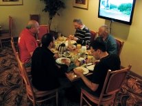 Thomas und Edgar wollten verschiedene Pakete und Briefpost aufgeben. Auch Dieter hatte noch eine Postsendung, nämlich den Glückwunschbrief zum Geburtstag von Gerd (DL8UE). In Deutschland hatte er mehrfach die Aufgabe des Briefes bzw. den Einwurf in einen Briefkasten "verschwitzt" … jetzt in den USA musste das gute Stück endlich auf den Weg gebracht werden. Als er vom Schalter zurückkam, freute er sich mächtig, denn er hatte nur 0,43 USD dafür bezahlen müssen. Ich wunderte mich schon etwas über dieses Porto, denn aus dem Amateurfunk wusste ich, dass Amerikaner für Briefe nach Deutschland und somit Europa rund einen Dollar zahlen müssen. Ich traute demnach nicht so recht den Angaben von Dieter und fragte ihn immer wieder, ob er sich bei dem Betrag denn sicher sei … am späten Abend ist ihm dann aufgefallen, dass auf dem Brief schon eine 0,55 Cent Briefmarke verklebt war, allerdings Eurocent! Das fiel dem Schalterbeamten wohl nicht auf und somit wurden beide Marken zusammen abgestempelt - eine Rarität für Philatelisten! Nach dem Postbesuch machten wir uns auf zum "Bear Lake", einem idyllischen See ganz in der Nähe von Estes Park. Doch auf dem Hinweg verschlechterte sich die Wetterlage zusehends. Dort angekommen stellten wir fest, dass noch viel zu viel Schnee lag. Zudem war der Weg äußerst schlecht und nicht geräumt, sodass man z. T. bis zu den Knien im Schnee versank. Nach einigen Überlegungen brachen wir den Spaziergang ab und machten uns auf zur nächst größeren Stadt Boulder. Dort erkundeten wir bisschen die Stadt. Stefan machte den Vorschlag, den örtlichen Apple-Store zu besuchen. Da waren die fünf eingefleischten Apple-User mit einverstanden und wir "pilgerten zum Allerheiligsten" der Stadt. Zum ersten Mal hatte ich ein iPad in Händen und sogleich wurde die Internetseite des Ortsverbandes Vulkaneifel (K34) aufgerufen - Begeisterung! Was für ein Display, was für eine super grafische Darstellung! Das ist genau das richtige Spielzeug, aber der Verstand siegte und somit kaufte nur Stefan "ein paar Kleinigkeiten". Gegen späten Nachmittag fuhren wir zum Thai-Restaurant "Buddha" und speisten dort vorzüglich! Thailändisches, nicht zu scharfes Essen mit ein paar asiatischen Bieren stillten die "niederen Instinkte", und so machten wir uns am Abend nach einem herrlichen Platzregen wieder auf den Heimweg. Gegen 20:30 Uhr erreichten wir müde unser Gästehaus. Thomas und Stefan verzogen sich recht schnell auf ihre Zimmer. Edgar, Dieter und Volker führten bei einigen Bieren noch "Kamingespräche" über den Amateurfunk. Um 22:15 Uhr löste sich die Runde auf und Nachtruhe stellte sich ein.