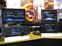 Gegen Mittag wurde der Himmel immer freundlicher, blauer und sonniger … es wurde warm und richtig schön! Ich lief durch die Hallen, schaute mir die Stände erst einmal flüchtig an, um sie später und an den folgenden Tagen genauer zu betrachten. Vorerst war ich bemüht, meinen Überblick zu verbessern und nach Highlights Ausschau zu halten. Auffällig waren die relativ vielen Erbauer und Anbieter von Morsetasten - wurde diese Betriebsart nicht schon vor Jahren totgesagt? Ein Gespräch mit einem Mitglied des "Morse Telegraph Club" bestätigte den Eindruck: in diesem Jahr waren wieder mehr kleinere und größere Händler für Morsetasten vor Ort. Vor allen die Firma Vibroplex, die eine Vielzahl ihrer Modelle ausstellte. Aber auch Funkamateure, die ähnlich der Schurr Tasten in sehr hoher Qualität selbst bauen, waren da - und das waren tolle Tasten! Auffällig waren die vielen Golf-Karren, die durch die Hallen und übers Gelände rauschten … für knappe $ 50 am Tag konnte man sich ein solch elektrisches Vehikel mieten, um dann auf diese bequeme Art und Weise das Angebot zu erkunden. Alle großen und namhaften Hersteller waren da, z.T. mehrfach in den verschiedenen Hallen. Am Abend würde ich folgende erste Eindrücke der Hamvention festhalten: die Messe ist größer als erwartet, geradezu gewaltig, dennoch übersichtlich. Uraltes Ambiente der 60er-Jahre, leicht heruntergekommen, aber mit Charme und Sauberkeit. Die Menschen sind äußerst nett, z.T. für europäische Verhältnisse übertrieben zuvorkommend und freundlich, aber keineswegs aufdringlich! Viele Gespräche mit Amerikanern, viele sprechen etwas Deutsch, alle kennen Deutschland, haben dort gewohnt oder gearbeitet oder kennen jemand, der das gemacht hat … nette Atmosphäre, wie ein großes Familienfest! Das Warenangebot ist riesig! Super Aufmachung, alle Geräte vor Ort. Keine Hektik, kein Geschiebe in den Gängen und auf dem Gelände. Alles ruhig und geordnet, viel Betrieb! Um 18:00 Uhr war der erste Messetag vorüber, wir verließen das Gelände und machten noch einen Abstecher zum "Huffman Prairie Flying Field", einem Teil des Dayton Aviation Heritage National Historical Park. Auf diesem ca. 34 km² großen Gelände in der Nähe von Dayton unternahmen die Gebrüder Wright in den Jahren 1904-1905 ihre schwierigen und gefährlichen Versuche mit ihren Fluggeräten. Zu sehen ist davon heute natürlich nicht mehr viel, außer dem riesigen Flugfeld, einigen Grundrissen von Gebäuden, einem Nachbau des ersten "Flughafengebäudes" der Welt sowie vielen Hinweistafeln. Dennoch ist dies natürlich historischer Boden, wurde doch hier u. a. der Grundstein für die moderne Luftfahrt gelegt. Einige Fotos später verließen wir auch schon wieder das Gelände, denn der Hunger kam so langsam durch und alle wollten diesen nur noch stillen … wir fuhren zur Fairfield Mall und besuchten die Food-Abteilung. Schon beim Betreten des riesigen Bereiches wurden wir von zwei konkurrierenden Asiaten, die sich rechts und links neben der Eingangstür befanden, mit heftigen Winkbewegungen begrüßt! Jeder wollte kleine Häppchen an den Mann bringen, damit man danach bei ihm verweilt und seine Bestellung aufgibt. Das war ein Schauspiel, für uns Europäer sehr ungewohnt und demnach auch lustig. Nachdem wir die gesamte Meile abgelaufen waren, um alle Angebote zu sichten, entschied sich jeder für eine andere amerikanische Spezialität, die auch sichtlich jedem gut schmeckten. Danach ging's zum Hotel, wo jeder auf sein Zimmer ging, um den Tag zu beenden. Jeder? Naja … diesmal traf es Dieter, dessen Tür sich nicht öffnen lies … aber irgendwann kam er dann auch rein.