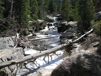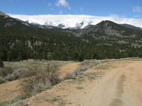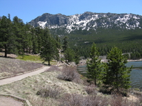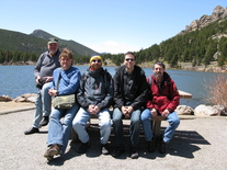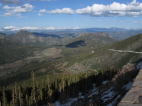 Nach einer erholsamen Nacht trafen sich alle zwischen 08:00 und 09:00 Uhr im Wohnzimmer. Um 09:30 Uhr frühstückten wir ausgiebig und berieten das Programm des anstehenden Tages. Wegen des herrlichen Wetters fotografierten wir anschließend die Umgebung vom Gästehaus und verbummelten so den Vormittag. Mein Kopfweh war immer noch nicht viel besser. Der Grund war der Aufenthalt in einer Höhe ständig zwischen 2.500 m über NN und 2.900 m über NN. Aber jammern nutze nichts - bei schönstem Film- und Fotowetter stand eine erneute Sightseeingtour durch die Rockys an. Am Lake Lily machten wir Halt, parkten das Auto und wanderten rund um diesen beschaulichen Bergsee. Bei phantastischen Panoramen mit z. T. schneebedeckten Bergspitzen, absolut angenehmem, frühlingshaft sonnigem und warmem Wetter und bei klarer, sauberer Luft, machte das Wandern richtig Spaß und mein Kopfweh ging so langsam weg. Der Allgemeinzustand besserte sich ebenfalls zusehends, ich schien mich so langsam an die Höhe zu gewöhnen. Die anderen hatten keine oder kaum Beschwerden - naja - einer muss ja dabei sein. Anschließend fuhren wir weiter und machten wenig später einen erneuten Stopp, um zu den Copeland Falls zu marschieren. Hier zeigte sich das typische, nordamerikanische Bild der Rockys. Ein urwüchsiger Bergbach, der in mehreren Etappen sich über Felsen stürzte - ein lohnender Ausflug, auch wenn wir etwas die Marschstrecke unterschätzten. Zum Schluss wollte Thomas noch unbedingt die höchste Passstrasse Nordamerikas fahren. Da sie schon mehrfach in den vergangenen Jahren den Anlauf gestartet hatten, dies aber jedes Mal wegen widriger Witterungen misslang, sollte es diesmal klappen … doch es sollte wieder nicht sein. Nach einer langen, bilderbuchartigen Auffahrt endete die Reise auf einer Passhöhe in 3.270 m über NN. Ab hier war die Strasse wegen Schnee gesperrt. Thomas, Edgar und Stefan gingen zu Fuß weiter bis auf eine Höhe von 3.350 m über NN, währenddessen Dieter und ich die fabelhafte Aussicht im Wagen sitzend genossen. Auch Dieter spürte die Höhe nun so langsam, bei mir ging das Unbehagen im gleichen Maße zurück. Nachdem die Ausflügler wieder zurück am Wagen waren, fuhren wir die Strecke wieder talwärts und trafen gegen 20:00 Uhr zum Abendessen im "Sweet Basilico" in Estes Park ein. Dort schlemmten wir, was das Zeug hielt! Unbeschreiblich - solch große Pizzaportionen hatte ich noch nie gesehen! Für vier Mann hätten ohne Weiteres zwei Pizzen genügt, doch wir waren unvernünftig … gut - dafür hatten wir dann am nächsten Tag noch reichlich italienisches Essen zum Frühstück, da wir die Doggy-Packs mitgenommen hatten. Zurück im Gästehaus tranken wir gemeinsam noch ein Bier und verschwanden gegen 22:00 Uhr auf den Zimmern. Mein Magen brauchte dringend Entspannung und so legte ich mich gleich ins Bett.