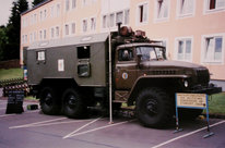 Am 14.06.1997 fand anlässlich „40 Jahre Fernmeldeaufklärungsregiment 940“ ein Tag der offenen Tür in der Kaserne statt. Dafür schleppte man den LKW auf den Parkplatz vor Block 14, um ihn als Ausstellungsobjekt der Amateurfunkgruppe der Bundeswehr am StO Daun zu präsentieren. Der Funkkoffer wurde durch Roman Mattes (DH8RM) mit einer UKW - Sende- und Empfangsanlage sowie einem Packet-Radio-Arbeitsplatz ausgerüstet und fand reges Interesse bei den Besuchern. Im Anschluss an die Veranstaltung wurde der URAL in die Halle 45/III geschleppt und in der hinteren rechten Ecke abgestellt. Dort diente er uns viele Jahre als „Lager“. Seitdem wir nicht mehr in einem Feldhaus untergebracht waren, hatten wir dazu leider keinen separaten Raum mehr. Der Funkkoffer war ein trockener Platz und somit konnten wir unsere gesamte Hardware zum Aufbewahren dort verstauen. Letztendlich verbrachte das Fahrzeug so die ganzen letzten Jahre in Daun. Hin- und wieder wurden Geräte in den LKW verbracht und genauso wieder aus dem Fahrzeug entnommen. Er stand in der Halle trocken und somit konnte auch kaum Korrosion ansetzen.